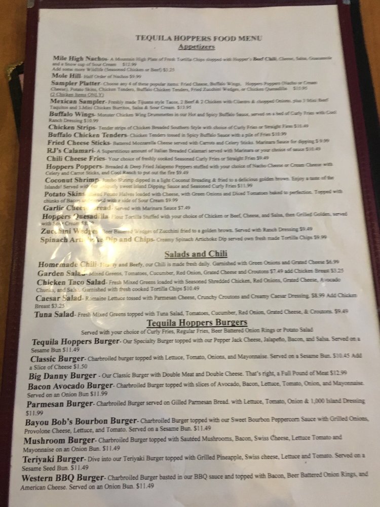 Tequila Hoppers Bar & Grill Menu (Update 2025)